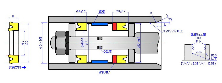 ●如果您不想使用背托環高壓不需要GB中。在磨損環組合的情況下,請參照耐磨環維度表。