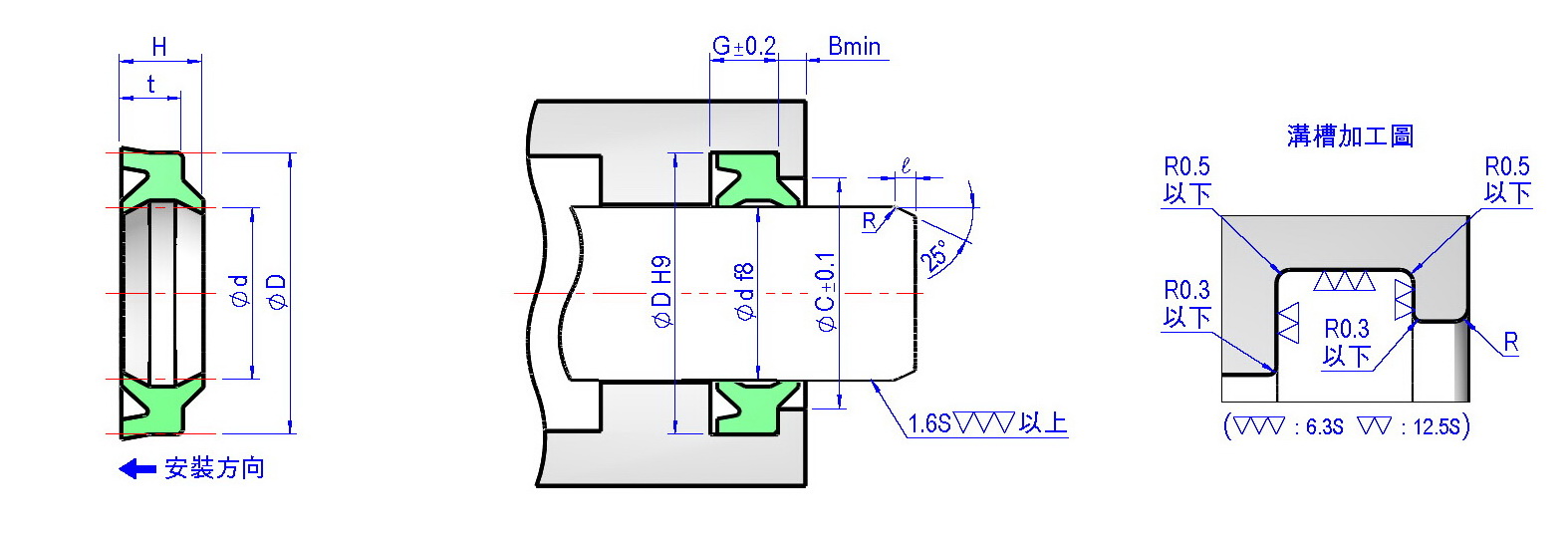 ●如上圖所示防塵密封件威力方向。請注意安裝方向。
