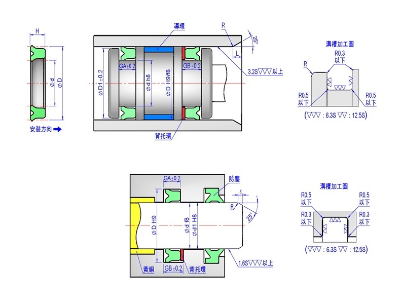 ●如果您不想使用背托環高壓不需要GB中。在磨損環組合的情況下,請參照耐磨環維度表。
